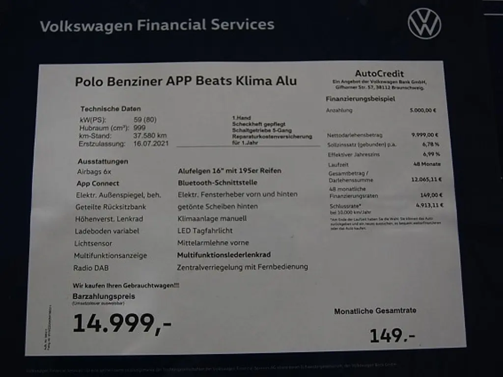 Volkswagen Polo Beats App Alu Bluetooth