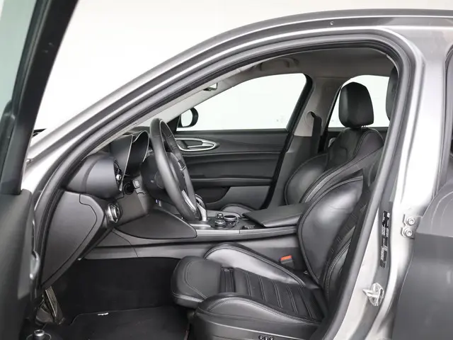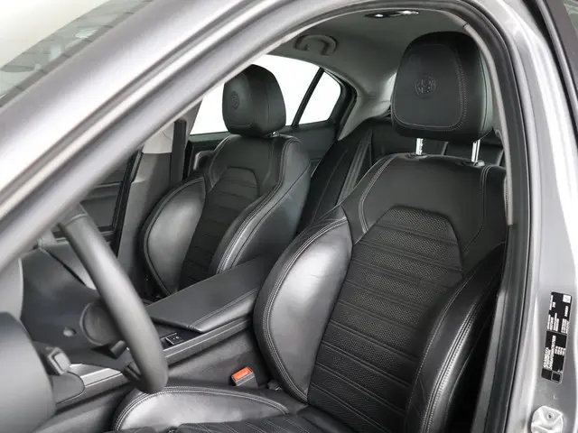 De Alfa Romeo Giulia Veloce belichaamt pure Italiaanse elegantie met een sportieve ziel. De combinatie van de krachtige 280 pk sterke 2.0 Turbo-benzinemotor en het geavanceerde Q4 vierwielaandrijvingssysteem zorgt voor uitzonderlijke prestaties en controle in elke bocht. Zijn gespierde lijnen, Grigio Stromboli metallic lak en karakteristieke V-grille maken hem direct herkenbaar als een echte Alfa Romeo.Binnenin heerst een ambiance van verfijning en focus. De sportstoelen met lederbekleding, stoel- en stuurverwarming en het 8,8 inch Alfa Connect-navigatiesysteem zorgen voor een perfecte balans tussen comfort en technologie. Elk detail is ontworpen om de bestuurder centraal te stellen van het sportstuur tot de aluminium schakelpeddels achter het stuurwiel.