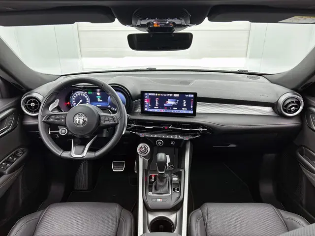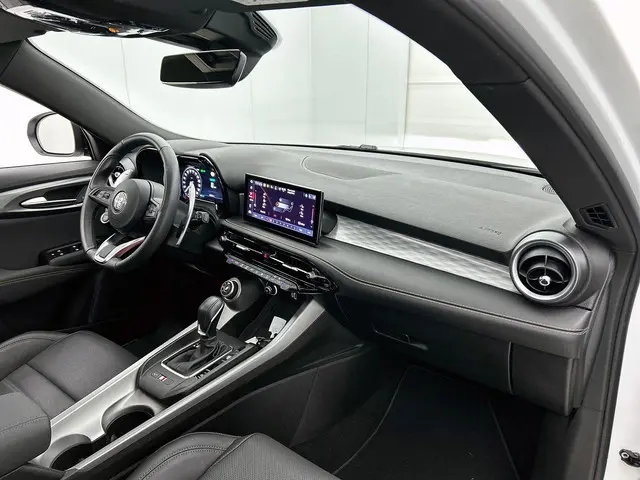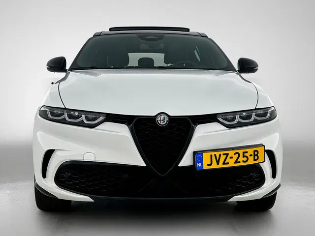 Ontspannen en zorgeloos autorijden, dat doet u met deze Alfa Romeo Tonale. Deze auto uit het bouwjaar 2024 heeft 28569 kilometer gelopen. Deze Alfa Romeo Tonale heeft in feite twee motoren: een voor benzine en een elektronische. Deze hybride oplossing biedt het beste van beide! Boven uw hoofd schijnt de zon. Het licht valt binnen door het elektrisch bediende glazen panorama dak. En door het comfort van het lederen interieur geniet u van elke kilometer. Behaaglijk onderweg zijn? Als bestuurder geniet u van de verwarmbare voorstoelen. Net als uw bijrijder! Deze Alfa Romeo Tonale heeft een verwarmd stuurwiel. Nooit meer koude handen onderweg. Opvallend is de geavanceerde matrix LED-verlichting met daglichtkwaliteit. De koplampen dimmen automatisch het deel van de lichtstraal waar voor- of tegenliggers in rijden. De overige segmenten blijven aan en verlichten de weg maximaal. In deze Alfa Romeo profiteert u onder andere ook van: 20 inch lichtmetalen velgen, adaptief dempingsysteem, in delen neerklapbare achterbank, LED-achterlichten en verwarmde ruitensproeiers.De indeling van het digitale dashboard is zo ingericht dat u met één blik precies weet wat u weten wilt. Inparkeren? Met de achteruitrijcamera heeft u er geen omkijken meer naar! Als u de adaptive cruise control inschakelt, regelt de auto zelf de snelheid en de afstand tot de auto voor u. Waar u zelf ook bent, u staat altijd in contact met de auto via de app op uw smartphone. Zo controleert u uiteenlopende functies, ook op afstand. Onderweg kunt u veilig genieten van het audio-installatiesysteem met DAB-radio en het full map navigatiesysteem. Want in deze Alfa Romeo bedient u ze vanaf het stuurwiel of met uw stem. Ook is de Alfa Romeo uitgerust met: automatische airconditioning, draadloos opladen, keyless entry en automatisch dimmende binnenspiegel.