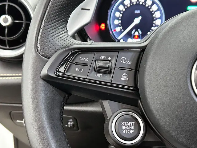 Geavanceerde technische systemen houden tijdens elke rit het verkeer in de gaten en reageren op potentieel gevaarlijke situaties. Verkeersbord-detectie herkent verkeersborden en toont deze op het instrumentarium van de auto. Het Lane-keeping systeem garandeert dat u zich niet onverhoeds buiten de lijnen van de rijstrook begeeft. Veel aanrijdingen bestaan uit kop-staartbotsingen. De forward collision warning reduceert dat risico aanzienlijk. In deze Alfa Romeo vinden we verder een vermoeidheidsherkenning, autonoom remsysteem en bandenspanningcontrolesysteem.