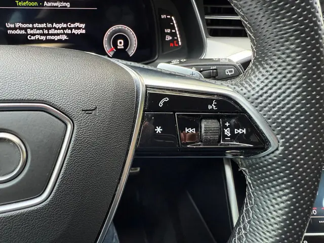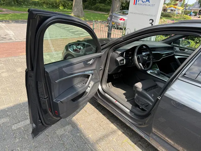 De Audi A6 Avant belichaamt de hoogste klasse, zichtbaar in zijn stijlvolle belijning en luxueuze binnenkant. Dit is zoals u van een typische Duitse auto kan verwachten. Drie letters veranderen deze Audi in een uitzonderlijke Audi. De S-Line styling staat voor individualiteit en sportiviteit. De hybride motor combineert het gebruik van brandstof en elektriciteit, en dat maakt van deze Audi A6 Avant een zuinige, slimme auto. En wat heeft deze auto nog meer in petto? Om te beginnen zien we het lederen interieur, dat een sfeer van luxe meebrengt. Maar als u gaat voor gemak, wordt u ook niet teleurgesteld. Kijk eens naar die elektrisch bedienbare achterklep! Dankzij de elektrische stoelbediening is het gemakkelijk om de optimale zitpositie te vinden. De verlichting van de koplampen geeft het gevoel dat het altijd dag is. De slimme matrix LED-technologie past zich aan bij tegenliggers, zonder verlies van lichtkwaliteit. Bij de rijke uitrusting horen ook 20 inch lichtmetalen velgen, sportonderstel, halflederen bekleding, warmtewerend glas, zwarte hemelbekleding en in delen neerklapbare achterbank.Het eigentijdse interieur wordt natuurlijk helemaal volmaakt met het digitale dashboard. Zoals u van zo'n jonge auto mag verwachten, zijn hier ook de geavanceerde remote services aanwezig. Simpelweg met een app op uw smartphone controleert u op afstand de status van de auto en bedient u diverse functies. Het high performance audiosysteem produceert krachtige bassen en heldere hoge tonen. Het navigatiesysteem loodst u snel naar uw reisdoel. U wilt van richting veranderen, een tegenligger lijkt daarbij in uw voorgenomen baan te komen? Dan reageert de kruisend verkeer detectie direct om een aanrijding te vermijden. Deze Audi is voorzien van automatische airconditioning, sportstuur met schakelpaddels, DAB ontvangst, parkeersensoren achter, regensensor en cruise control.