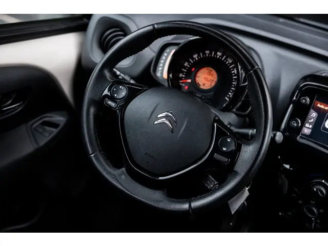 Klein rijden, groot genieten! Van de wendbaarheid, het makkelijke inparkeren, de lage wegenbelasting en het lage brandstofverbruik bijvoorbeeld. De motor in deze Citroen maakt een vlotte rijstijl mogelijk en is toch zuinig met brandstof. Bij de uitrusting van deze auto horen onder meer 15 inch lichtmetalen velgen, LED-dagrijverlichting en in delen neerklapbare achterbank.De achteruitrijcamera levert eersteklas parkeerservice. U weet precies hoeveel ruimte u nog heeft, in beeld en geluid. Gemakkelijk en veilig is de spraakbediening voor het audiosysteem. Daarbij kunt u het ook bedienen met de knoppen op het stuur. Deze auto heeft airconditioning aan boord. Ook lederen stuur, boordcomputer en lederen versnellingspook horen tot de voorzieningen op deze auto.
