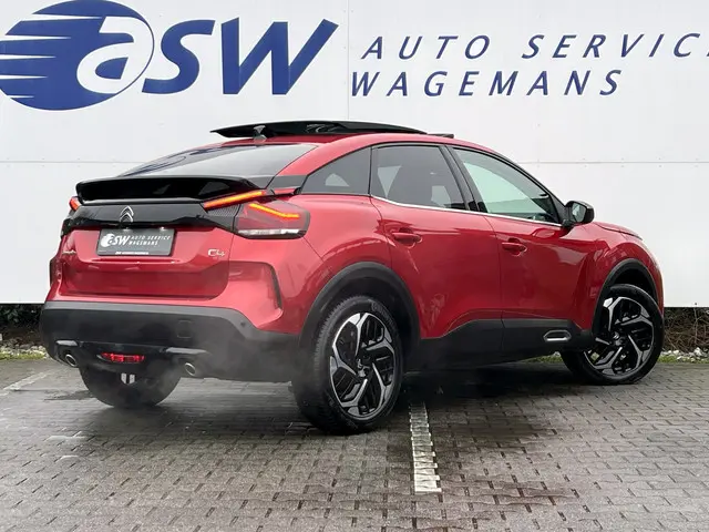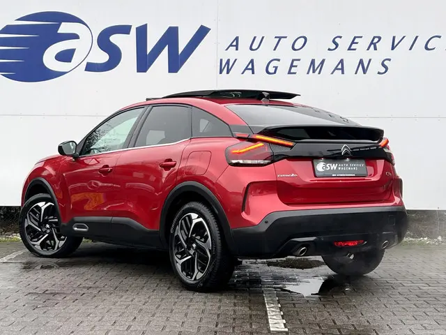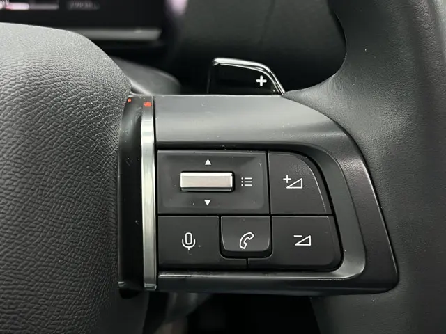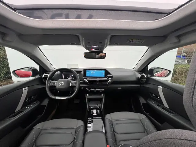 Techniek en design helemaal van nu. Kilometerstand van gisteren. Deze bijna-nieuwe Citroën C4 heeft z'n nestveren afgeschud en is klaar om te vliegen. Deze auto is bijna nieuw, ondanks dat hij uit 2023 komt; hij heeft slechts 29832 kilometer afgelegd. Een krachtige driecilinder benzinemotor en een prettige automatische transmissie zorgen voor de aandrijving van deze stoere Citroën. Kent u het gevoel van een elektrisch bediend glazen panorama dak? Wij zeggen: licht, lucht en ruimte. En dan hebben we het nog niet eens over de luxe sensatie van het lederen interieur. Winterse omstandigheden? Geniet dan van het comfort van de stoelverwarming! De uitmonstering van deze auto wordt gecompleteerd door onder meer 18 inch lichtmetalen velgen, Full LED koplampen, halflederen bekleding, adaptief dempingsysteem, geluidsisolerende ramen en in delen neerklapbare achterbank.U zult verrukt zijn van de digitale wereld van mobiliteit; het digitale dashboard projecteert alles wat u nodig heeft om uw rit aangenaam en veilig te maken. Met de achteruitrijcamera ziet u precies wat er achter de auto gebeurt. Met adaptive cruise control houdt de auto zelfstandig afstand tot uw voorligger. Een veiligheidsverhogende optie waarmee u comfortabel onderweg bent. Loopt het verkeer onderweg vast, schakel dan de file assistent in en laat het systeem zorgen voor de juiste afstand bij stilstaan en rijden. Spraaksturing luistert naar uw stem en bedient de belangrijkste voertuigfuncties. Deze Citroën is voorzien van connected drive services, navigatiesysteem, achteropkomend verkeer waarschuwing, automatische airconditioning, schakelpaddles aan het stuur en DAB ontvangst.