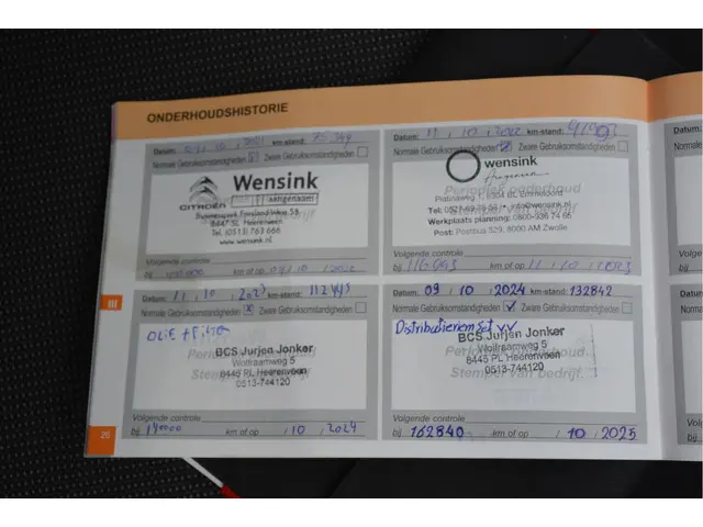 Onderhoudsboekjes: Aanwezig
