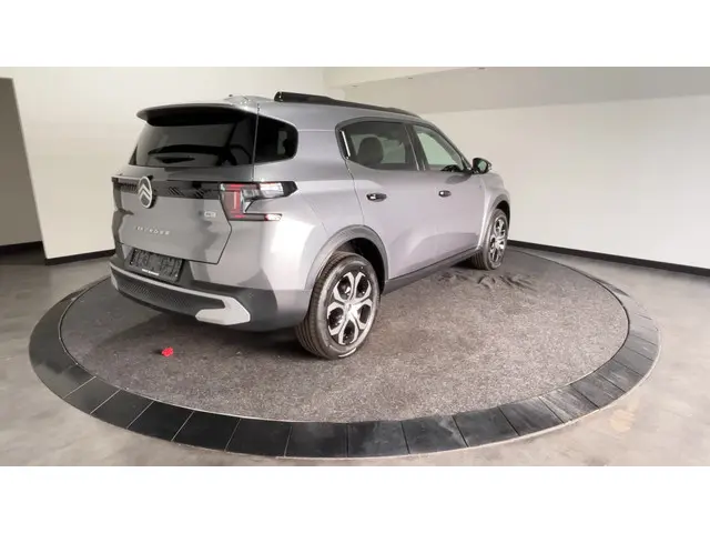 Duurzaam en dynamisch, de Citroën Ë-C3 Aircross verenigt deze twee uitersten in zich. Dit is een auto uit 2026, er staat 59 kilometer op de teller. Gas geven is er met de elektromotor niet meer bij. Stil snelheid maken wel! Neem plaats achter het stuur en ervaar de weldaad van de comfortstoelen. De uitmonstering van deze auto wordt gecompleteerd door onder meer LED koplampen, adaptief dempingsysteem, dakspoiler, donker getint glas achter en in delen neerklapbare achterbank.Omdat u nou eenmaal geen ogen in uw achterhoofd heeft, is het altijd lastig om achteruit te rijden zonder brokken te maken. De achteruitrijcamera lost dat probleem op. Locatie, motorconditie, storingen... via Connected Services krijgt u alle vitale info over de auto door. Ook handig bij pech! Of het buiten nu warm is of koud, dankzij electronic climate control is het binnen altijd behaaglijk. Volumeknoppen, zenderschakelen, muten... U doet alles met de audiobediening op het stuur. Veilig en gemakkelijk. De DAB-ontvanger zorgt voor een ruime keuze uit digitale radiozenders en een kristalheldere geluidsweergave. Met regensensor, cruise control, centrale deurvergrendeling met afstandsbediening en verstelbaar stuur is deze auto helemaal compleet.