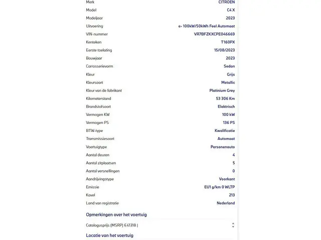 Voertuiggegevens van deze Citroën C4