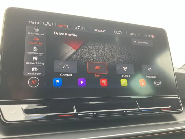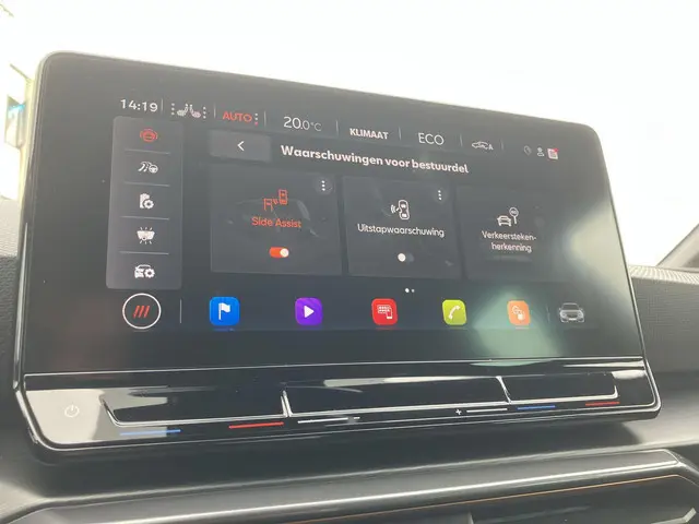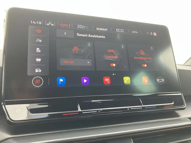 Deze CUPRA is voorzien van verschillende intelligente veiligheidsvoorzieningen. Ze kijken tijdens het rijden als het ware met u mee, ze signaleren potentieel gevaarlijke situaties en in een aantal gevallen kunnen ze ook ingrijpen. Onderweg zorgt verkeersborddetectie ervoor dat u geen waarschuwingsbord mist. Het Lane-keeping systeem zorgt dat u mooi binnen de lijntjes blijft. Ongemerkt buiten de rijstrook komen is er niet meer bij. Forward collision warning helpt u om kop-staart aanrijdingen te voorkomen. Ook helpen het dodehoekdetectie, front assist, hill hold functie, vermoeidheidsherkenning, autonoom remsysteem en bandenspanningcontrolesysteem, uw rit tot een veilige rit te maken.