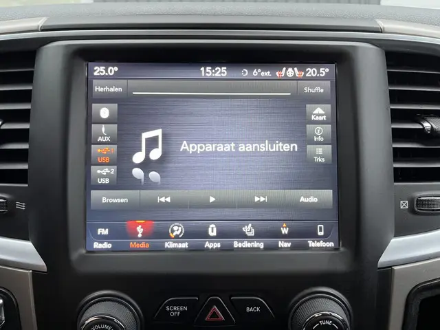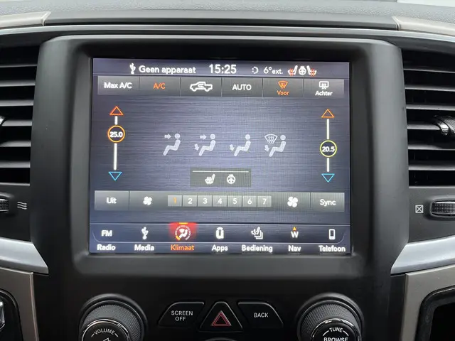 Dodge Ram 5.7 V8 4x4 Crew Cab 5'7 Lpg en benzine Airco Cruise Controle Stoelverwarming Stuurverwarming Lederbekleding Stuurwielbedingen Telefoon verbinding Chromen accenten Elec zonnedak Hardtop deksel Pick-up Open laadbak La