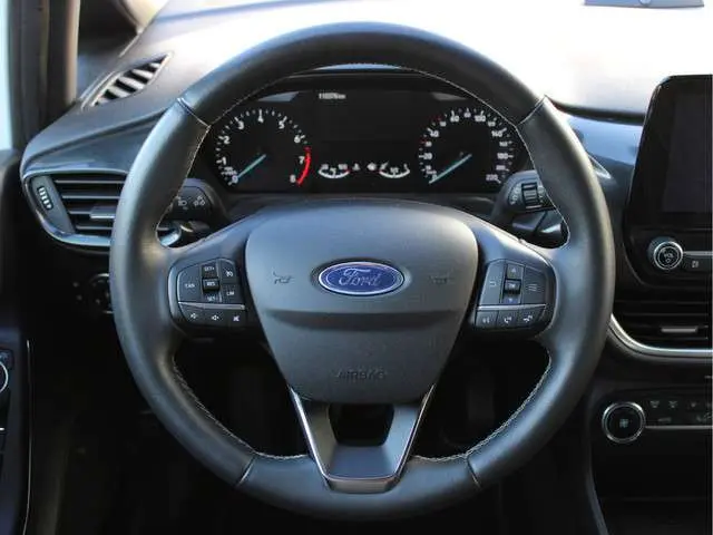 Zeer nette origineel Nederlandse Dealer onderhouden en van 1e Eigenaar afkomstige Ford Fiesta 1.0 EcoBoost Active X. Deze Fiesta is onder andere voorzien van: Climate en Cruise Control, Navigatie, Bluetooth, Apple Carplay, Android Auto, Draadloos telefoon laden, Bang & Olufsen Soundsystem, Lane Assist met correctie, Spraakbediening, Parkeersensoren achter, Keyless Entry en Start, Elektrische ramen Voor + Achter, Elektrisch verstelbare, Inklapbare en Verwarmbare spiegels, 17 inch Lichtmetalen velgen, Led verlichting en in hoogte verstelbare voorstoelen.Deze Ford Fiesta is door ons vooraf nagekeken en voorzien van nieuwe Brembo remschijven en remblokken aan de voorzijde.