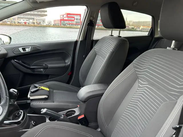Distributie riem is reeds vervangen en wel bij 130.000 km in okt 2024. Toonaangevend technologie, moderne veiligheidsvoorzieningen en volop rijplezier. Met deze Ford Fiesta kiest u voor een auto die alles heeft wat u belangrijk vindt. Hij heeft een benzinemotor en een handgeschakelde zesversnellingsbak. Ook in de winter en als het koud is, heeft u het snel weer warm dankzij de stoelverwarming in deze auto. Dankzij de xenonverlichting profiteert u in het donker van een krachtige en heldere lichtbundel. Ook 18 inch lichtmetalen velgen, halflederen bekleding, LED-dagrijverlichting, donker getint glas achter, in delen neerklapbare achterbank en LED-achterlichten zijn aan boord.Alles vrij achter? De achteruitrijcamera laat het meteen zien. In deze auto kunt u de belangrijkste functies bedienen met uw stem. Deze Ford Fiesta is voorzien van remote services. Via uw smartphone bedient u diverse functies ook op afstand en krijgt u informatie over de status van uw auto. In deze auto klinkt uw favoriete muziek nog beter dankzij het high performance audiosysteem. Het navigatiesysteem met groot kleurenscherm zorgt ervoor dat u snel en ontspannen op uw bestemming aankomt. Met automatische airconditioning, regensensor, cruise control, keyless entry, buitentemperatuurmeter en automatisch dimmende binnenspiegel is deze auto helemaal compleet.