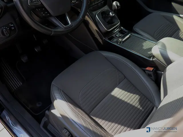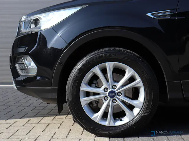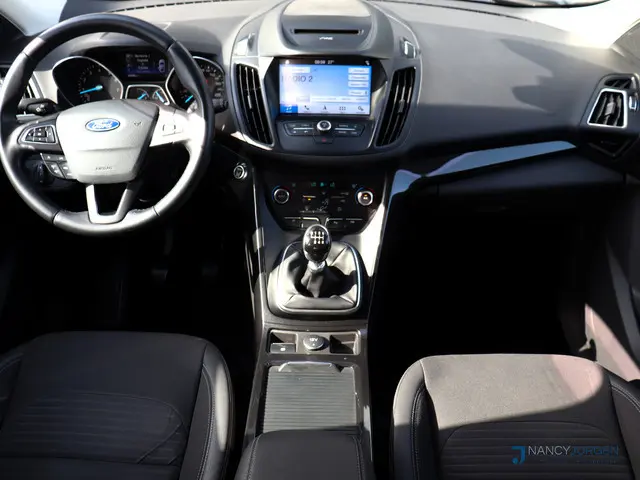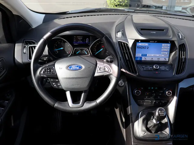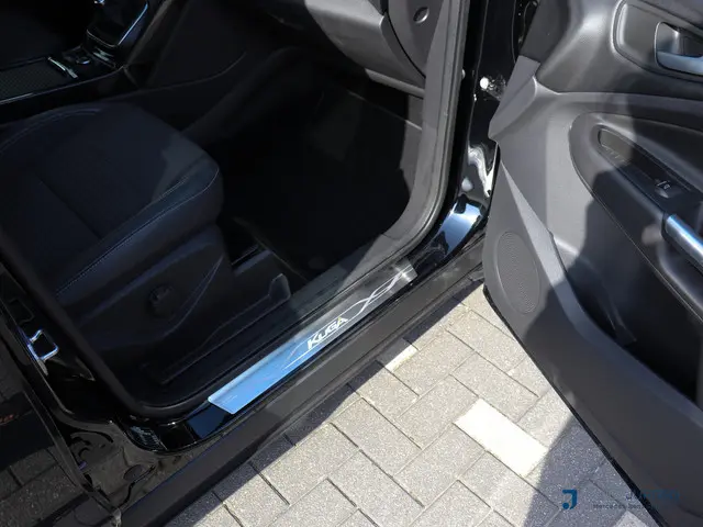In het moderne verkeer hebt u achter het stuur van de Ford Kuga altijd de controle. Deze auto komt uit 2017. Hij heeft een benzinemotor en een handgeschakelde zesversnellingsbak. Voor het pittige uiterlijk én goed gesteund zitten zorgen de sportstoelen. Dankzij het elektrisch bediende glazen panoramadak lijkt het of u altijd met open dak rijdt. Verder is de Ford uitgerust met: 17 inch lichtmetalen velgen, halflederen bekleding, LED-dagrijverlichting, in delen neerklapbare achterbank, verstelbare lendensteunen en snelheidsafhankelijke stuurbekrachtiging.De achteruitrijcamera maakt inparkeren gemakkelijker dan ooit. Wat wilt u onderweg horen? Er is volop keus, dankzij bluetooth. Het full map navigatiesysteem is met het audiosysteem gecombineerd. De electronic climate control zorgt voor een behaaglijk klimaat in de auto. Het drukke verkeer eist onderweg al uw aandacht op. Daarom is het goed dat deze Ford is voorzien van diverse systemen die u assisteren tijdens de rit. Een automatisch inschakelbare verlichting neemt het waar als het donker wordt of gaat schemeren, en schakelt dan automatisch de verlichting in. Op dezelfde manier "ziet" de regensensor de eerste spatjes regen en schakelt dan de ruitenwissers in, en als het harder gaat regenen zet hij de ruitenwissers ook in een snellere stand. Er is ook cruise control aan boord, om met een constant tempo ontspannen en zuinig te rijden. Met dashboard met spraakbediening, keyless entry, automatisch dimmende binnenspiegel, lederen stuur, bagage afdekhoes en boordcomputer is deze auto helemaal compleet.