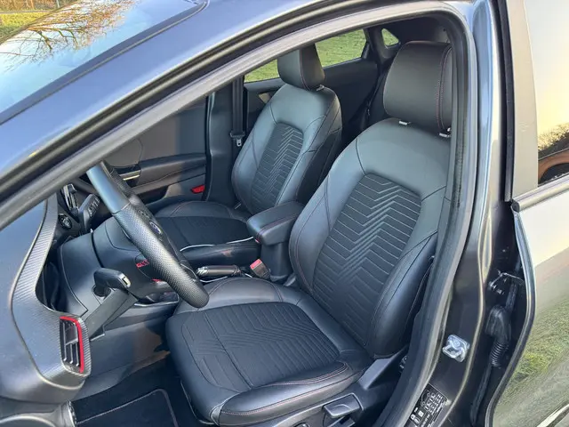 Wil je comfortabel, zuinig en ruim? De bijzonder complete Puma Ecoboost Hybrid in ST-Line X uitvoering heeft het allemaal. Ga zitten en geniet!Deze zeer mooie en geavanceerde Ford Puma is van vele opties voorzien, waaronder: navigatie, adaptieve cruise control, airconditioning (automatisch), achteruitrijcamera, LED koplampen, LED achterlichten, volledig LCD instrumentenpaneel, parkeersensoren voor en achter, automatisch inparkeren, SYNC + voice control, draadloos telefoon opladen, Bang & Olufsen Premium Audio, dode hoek detectie, 17" two-tone lichtmetalen velgen, rode stiksels in de bekleding en stuurwiel, unieke ST-Line accenten, DAB+ radio, lederen/stof bekleding, zwarte hemelbekleding, Apple Carplay/Android Auto, enz. enz.