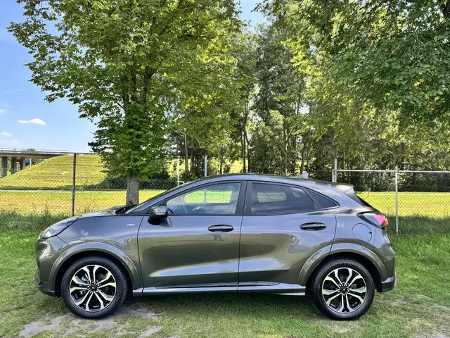 Wil je comfortabel, zuinig en ruim? De bijzonder complete Puma Ecoboost Hybrid in ST-Line X uitvoering heeft het allemaal. Ga zitten en geniet!Deze zeer mooie en geavanceerde Ford Puma is van vele opties voorzien, waaronder: navigatie, adaptieve cruise control, airconditioning (automatisch), achteruitrijcamera, LED koplampen, LED achterlichten, volledig LCD instrumentenpaneel, parkeersensoren voor en achter, automatisch inparkeren, SYNC + voice control, draadloos telefoon opladen, Bang & Olufsen Premium Audio, dode hoek detectie, 17" two-tone lichtmetalen velgen, rode stiksels in de bekleding en stuurwiel, unieke ST-Line accenten, DAB+ radio, lederen/stof bekleding, zwarte hemelbekleding, Apple Carplay/Android Auto, enz. enz.