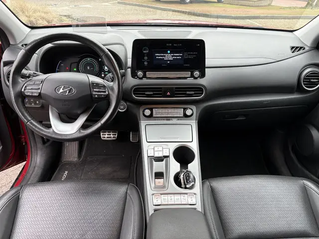 Bij Hyundai geldt het motto 'New Thinking. New Possibilities'. En dat merk je aan ieder model. De prestaties van de elektromotor kunnen de vergelijking met een brandstofmotor moeiteloos aan. Donkere en koude maanden? U zit altijd goed dankzij de stoelverwarming. Pak aan, 't is winter! Zo'n verwarmd stuurwiel is dan bijzonder prettig! Tot de voorzieningen van deze auto behoren 17 inch lichtmetalen velgen, LED koplampen, donker getint glas achter, in delen neerklapbare achterbank, LED-achterlichten en verstelbare lendensteunen.