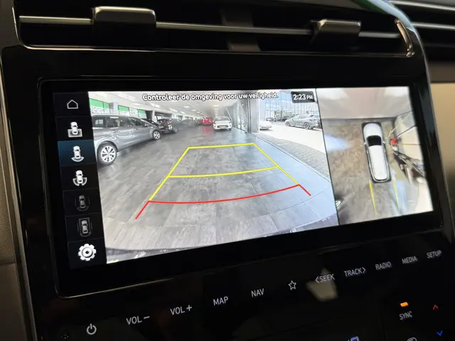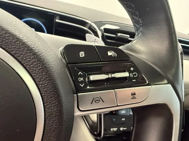 Voor deze Hyundai Tucson moet u snel zijn, want die gaat aandacht krijgen. Net binnen, maar daar blijft-ie niet lang! De aanwezige hybride motor is een slimme extra. Tijdens het rijden en remmen laadt de accu bij, zodat de elektromotor de brandstofmotor kan ondersteunen of het zelfs helemaal overnemen. Dat scheelt in kosten! De verwarmbare voorstoelen zijn een weldaad voor rug en schouders. Licht en lucht komen onbelemmerd binnen als het elektrisch bediende glazen panoramadak met één druk op de knop wordt geopend. De elektrische achterklep opent met een druk op de knop, zodat u gemakkelijk toegang heeft tot de bagageruimte. Ook achterin heerst een luxe sfeer, vanwege de verwarmde achterbank. Tot de voorzieningen van deze auto behoren 19 inch lichtmetalen velgen, LED koplampen, donker getint glas achter, in delen neerklapbare achterbank, LED-achterlichten en verstelbare lendensteunen.Alle benodigde informatie helder in beeld: het digitale dashboard is een geweldige rijhulp. Dankzij de 360 graden camera kunt u zowel de voor- als achterzijde van het voertuig in het oog houden, wat bijdraagt aan een veiligere rijervaring. Met adaptive cruise control houdt de auto zelfstandig afstand tot uw voorligger. Een veiligheidsverhogende optie waarmee u comfortabel onderweg bent. Na een lange werkdag in de file: daar zit niemand op te wachten. Gelukkig helpt de file assistent een handje. Het radarsysteem meet de ruimte tot de voorligger en bewaakt de juiste afstand. Stilstaan? Dan remt en stopt de auto vanzelf. Deze auto gaat met u in gesprek. Hij vertelt u dankzij remote services alles over de status van diverse onderdelen en laat zich desgevraagd ook activeren. Gewoon via uw smartphone. En dan is deze auto ook nog eens voorzien van dashboard met spraakbediening, premium audiosysteem, full map navigatiesysteem, kruisend verkeer detectie, automatische airconditioning en sportstuur met schakelpaddels.