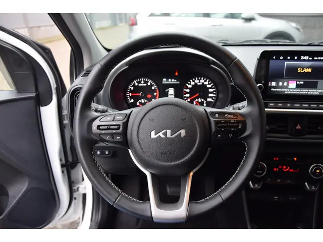 Deze Kia Picanto is van de jongste generatie. Prestaties, brandstofverbruik - alles helemaal van nu. Mét al wat kilometers op de teller. Een nieuw model, maar onder de nieuwprijs! Deze auto uit 2024 heeft nauwelijks gereden, met een tellerstand van slechts 10744 kilometer. Met zijn benzinemotor en automatische transmissie is dit een prima auto voor nog vele kilometers. Ook is de auto voorzien van: 15 inch lichtmetalen velgen, LED-dagrijverlichting, extra getint glas, in delen neerklapbare achterbank en LED-achterlichten.Zelfs een kleine aanrijding kan flinke kosten veroorzaken. Gelukkig laat de achteruitrijcamera precies zien wat er zich achter de auto bevindt en geeft een waarschuwingssignaal. Appen met uw auto? Geen probleem. U kunt van overal contact opnemen, de functies controleren en activeren. U bedient 'm met remote services. De bediening van het audiosysteem en het full map navigatiesysteem gebeurt met knoppen op het stuur en als u wilt zelfs met uw stem. De audio is overigens voorzien van DAB-radio voor een altijd heldere ontvangst. De electronic climate control zorgt voor een prettige binnentemperatuur. Een heerlijke egale snelheid? Even de cruise control inschakelen! En dan is deze auto ook nog eens voorzien van keyless entry en lederen stuur en versnellingspook.