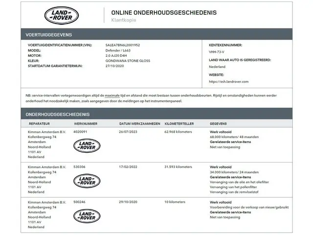 Voertuiggegevens van deze Land Rover Defender
