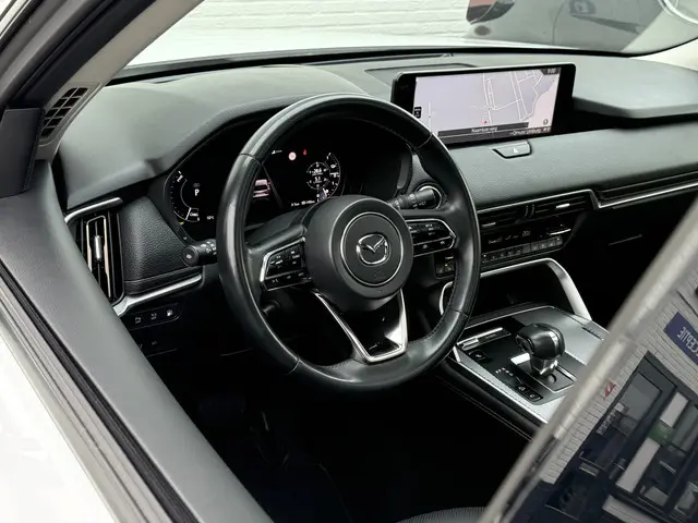 Alle technologie in de Mazda CX-60 is er op gericht om uw rit veilig en gemakkelijk te laten verlopen. Dit mooie exemplaar komt uit 2022. Een krachtige viercilinder benzinemotor en een prettige automatische transmissie zorgen voor de aandrijving van deze stoere Mazda. Het kan niet op: een fraai lederen interieur, zeeën van licht met het elektrisch bediende glazen panorama dak en probleemloos in- en uitladen met de elektrisch bedienbare achterklep. Dankzij de elektrische stoelbediening is het gemakkelijk om de optimale zitpositie te vinden. Deze Mazda CX-60 heeft eigenlijk alles, zelfs een verwarmde achterbank. Bij de uitrusting van deze Mazda horen onder meer 20 inch lichtmetalen velgen, LED koplampen, dakspoiler, donker getint glas achter, in delen neerklapbare achterbank en LED-achterlichten.Over het digitale dashboard is goed nagedacht. Alle belangrijke functies binnen en buiten in één oogopslag. Het gebruik van de 360 graden camera op deze auto vergemakkelijkt het parkeren aanzienlijk, vooral in krappe ruimtes. Met adaptive cruise control houdt deze auto automatisch afstand tot uw voorligger. Slimme spraakbesturing herkent gesproken opdrachten en voert ze uit. Vanaf elke plek contact maken met deze auto: dat kan met behulp van remote services, die u simpel activeert met uw smartphone. De uitrusting van deze Mazda is met Bose-audioinstallatie, full map navigatiesysteem, kruisend verkeer detectie, electronic climate control, schakelpaddles aan het stuur en draadloos opladen behoorlijk compleet.