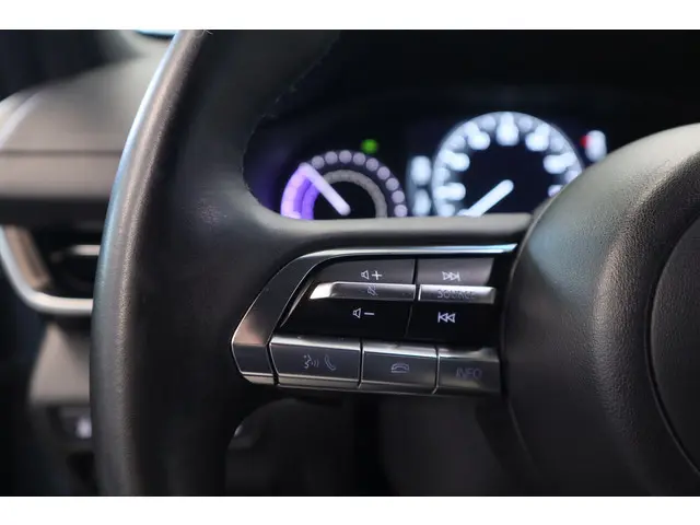 Zoals u mag verwachten van deze Mazda MX-30 is hij uitgerust met een reeks aan actieve veiligheidssystemen. Belangrijke ritfuncties permanent in uw zichtveld: dat is het voordeel van de head-up display. Tijdens de rit hebt u altijd een bijrijder, want de verkeersbord-detectie leest de borden langs de weg en projecteert ze voor u op het instrumentarium. Ongemerkt buiten de rijstrook raken? Nee hoor, het Lane-keeping systeem waarschuwt en corrigeert. In deze Mazda vinden we verder een dodehoekdetector detectiesysteem, forward collision warning system, hill hold functie, brake assist, vermoeidheidsherkenning en bandenspanningcontrolesysteem.