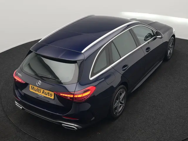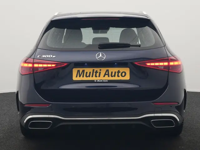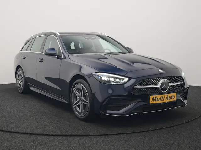 Mercedes-Benz C-klasse Estate 300 e AMG Line Plug In Hybrid 313pk Dealer O.H. PHEV | Adaptive Cruise | Head Up | Camera | Digital LED | Bi Color Lederen Sportstoelen Verwarmd | Apple Carplay | Sfeerverlichting | Virtual | Navigatie | DAB |De Mercedes-Benz C-klasse Estate vertegenwoordigt het beste van degelijk Duits design. Dit exemplaar is van het bouwjaar 2022 en heeft 61679 kilometer op de teller staan. De AMG-styling geeft een niet te missen uitstraling. Onder de motorkap een elektromotor en een verbrandingsmotor. Veel duurzame kilometers dus! De verwarmbare voorstoelen benadrukken nog maar eens dat we hier te maken hebben met een regelrechte verwenauto voor bestuurder en bijrijder. Altijd een goede zitpositie bij iedere snelheid, dankzij de sportstoelen. Een praktische extra is de elektrisch bedienbare achterklep die opent en sluit met een druk op de knop. Natuurlijk behoren 18 inch lichtmetalen velgen, Full LED koplampen, AMG-styling, sportonderstel, donker getint glas achter en in delen neerklapbare achterbank ook tot de uitrusting van deze complete auto.