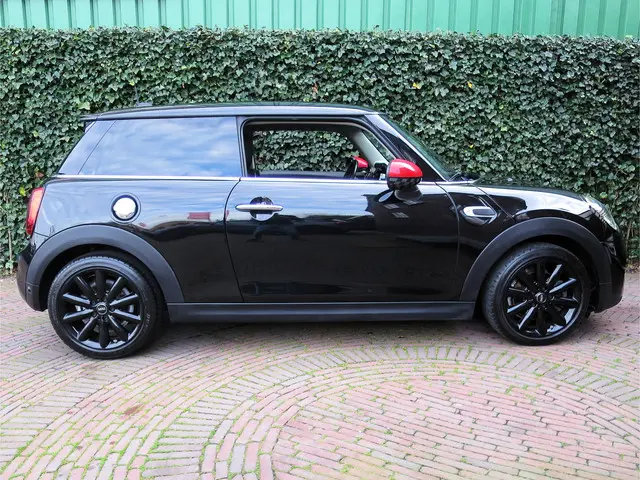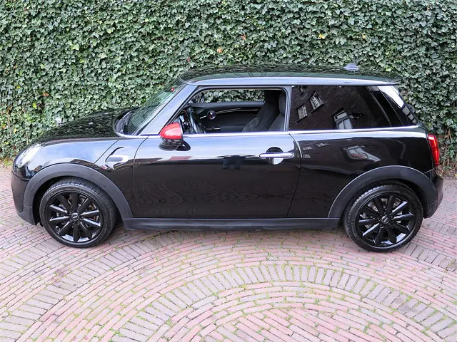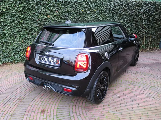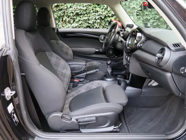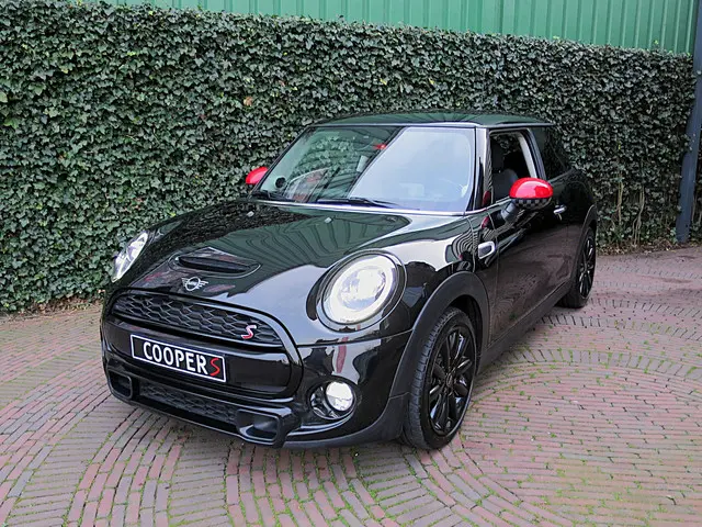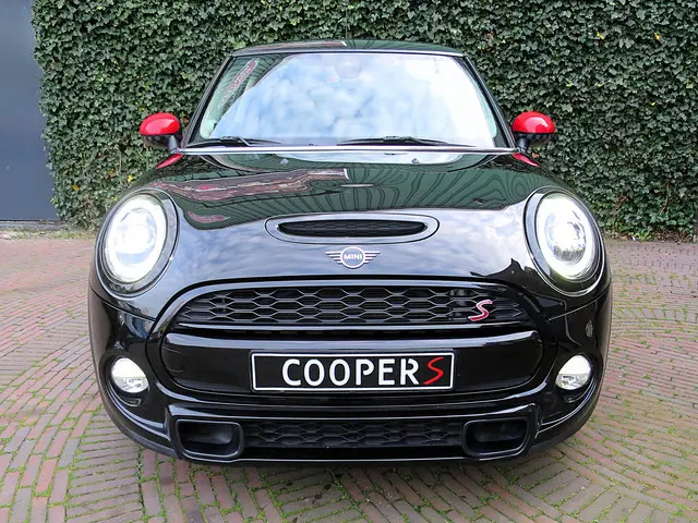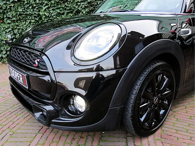Leuke Mini Cooper S 2.0 Chili F56 in de kleur Midnight Black metallic met JCW spiegelkappen, Black Line pakket, zwarte 17" Cosmos Spoke velgen en een half leder Diamond Carbon Black sportinterieur met stoelverwarming, Carbon Black Colour Line en bijpassende Piano Black interieurdelen. Deze Mini is o.a. uitgerust met een Driver Assistance Pack (autonomous emergency braking, cruise control adaptief met stop&go, bots waarschuwing systeem, grootlichtassistent, verkeersbord detectie), climate control, LED-koplampen en mistlampen, Union Jack achterlichten, Hifi-systeem Harman Kardon, navigatie, Apple Carplay, Head-up Display, draadloze telefoonlader en een opberg- en lichtpakket.De Mini Cooper S wordt geleverd met een onderhoudsbeurt volgens schema, nieuwe APK en 12 maanden Bovag-garantie.
