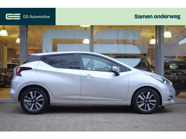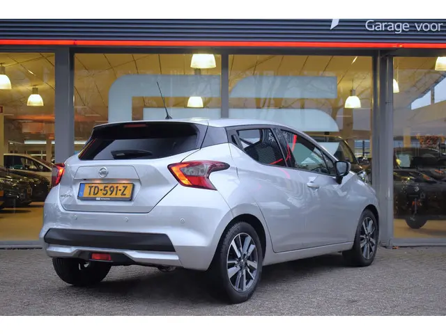 Klein in formaat, klein in verbruik, klein in wegenbelasting. En volwassen in prestaties en ruimte. Met zijn pittige benzinemotor stuurt u deze auto gemakkelijk en vlot door het verkeer. Verder is de Nissan uitgerust met: 16 inch lichtmetalen velgen, LED-dagrijverlichting, extra getint glas, in delen neerklapbare achterbank en snelheidsafhankelijke stuurbekrachtiging.Omdat u nou eenmaal geen ogen in uw achterhoofd heeft, is het altijd lastig om achteruit te rijden zonder brokken te maken. De achteruitrijcamera lost dat probleem op. U kunt het audiosysteem met DAB-ontvangst en het full map navigatiesysteem bedienen met de knoppen op het stuur. Met de automatische airconditioning selecteert u de gewenste temperatuur. Het systeem doet de rest. De automatisch inschakelbare verlichting en regensensor zorgen dat onderweg automatisch de verlichting en de ruitenwissers worden ingeschakeld. Daarmee nemen ze u veel werk uit handen. Cruise control is aanwezig; prettig voor de lange einden. En deze auto heeft ook lederen stuur, centrale deurvergrendeling met afstandsbediening en boordcomputer als standaard uitrusting.