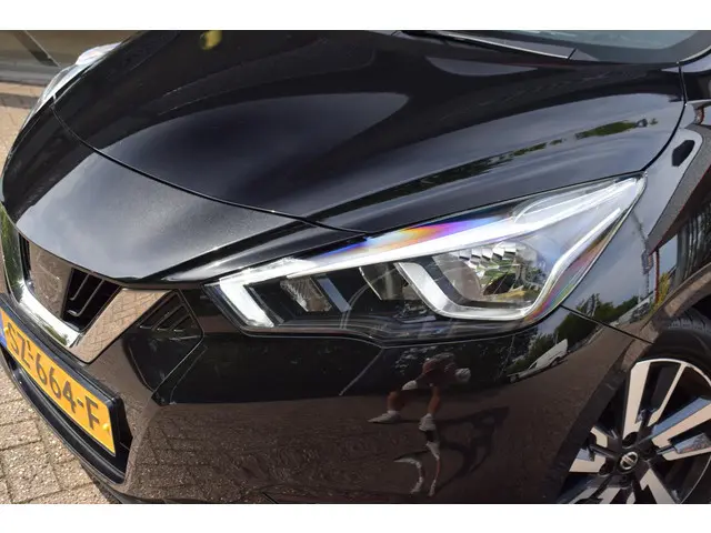 Eigenlijk moet u deze Nissan Micra niet online bekijken. Kom gerust naar onze showroom om de stijlvolle carrosserie, de pittige motor en het comfortabele interieur zelf te ontdekken. Het is vermeldenswaard dat deze auto maar 37725 kilometer heeft gereden sinds 2018. Zijn pittige prestaties dankt deze auto aan zijn compacte en zuinige motor. U wordt in deze auto ook getrakteerd op 17 inch lichtmetalen velgen, LED-dagrijverlichting, extra getint glas, in delen neerklapbare achterbank en snelheidsafhankelijke stuurbekrachtiging.Nooit meer parkeerschade dankzij de achteruitrijcamera. Selecteer uw reisbestemming en het full map navigatiesysteem brengt u snel waar u moet zijn. De auto is ook uitgevoerd met automatische airconditioning. Altijd twee handen aan het stuur, wel zo veilig en gemakkelijk. Ook daaraan is gedacht, met de audiobediening op het stuur. Voor een storingvrije radio-ontvangst zorgt de ingebouwde DAB-ontvanger. Met regensensor, cruise control, lederen stuur, centrale deurvergrendeling met afstandsbediening en boordcomputer is deze auto helemaal compleet.