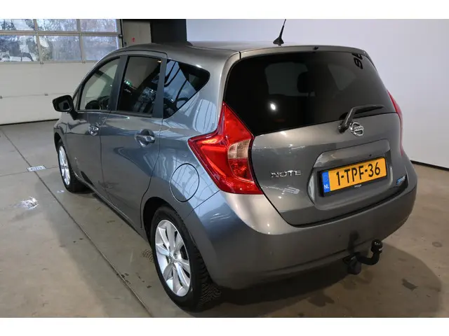 Met de Nissan Note is heel veel mogelijk. Een vakantie met het hele gezin, die nieuwe kast ophalen bij Ikea of gezellig met zijn vijven een dagje erop uit. Deze is uit 2014 en heeft 66972 kilometer op de teller. De aandrijving van deze Nissan wordt verzorgd door een driecilinder benzinemotor en een automatische transmissie. Bij de zeer complete uitrusting van deze auto behoren ook 16 inch lichtmetalen velgen, in delen neerklapbare achterbank en snelheidsafhankelijke stuurbekrachtiging.Het full map navigatiesysteem brengt u soepel en vlot naar uw bestemming. Met de automatische airconditioning selecteert u de gewenste temperatuur. Het systeem doet de rest. Muziek aan, muziek uit? Het kan met een simpele vingerbeweging dankzij de audiobediening op het stuur! Achter het stuur van deze Nissan bent u niet alleen. De auto kijkt als het ware met u mee tijdens de rit. De regensensor schakelt de ruitenwissers in als het nodig is en de automatisch inschakelbare verlichting doet de lichten voor u aan. Er is cruise control aan boord, voor veilige en zuinige kilometers. Wat u ook in deze auto kunt vinden zijn keyless entry, centrale deurvergrendeling met afstandsbediening, boordcomputer en verstelbaar stuur.