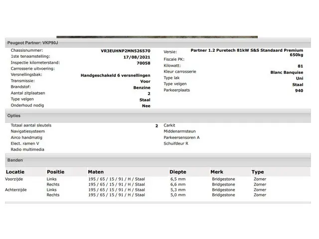 Voertuiggegevens van deze Peugeot Partner