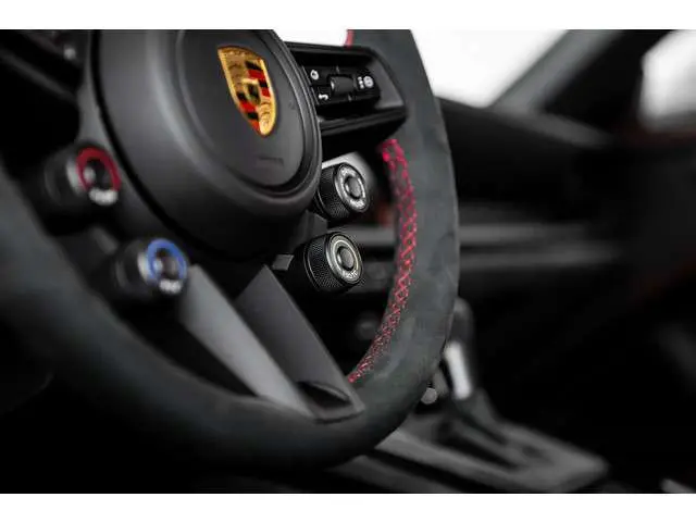 GT3 RS Sportlenkrad mit Multifunktion, DRS-Taste, Chrono-Tasten, PDK-Schaltpaddles in Darksilver und vier einzelne Mode-Schalter für Fahrmodi, PTV+, PASM und ESC/TC. Lenkradkranz (Durchmesser 360 mm) in Race-Tex schwarz mit 12-Uhr-Markierung in gelb und beledertes Airbag-Modul in Glattleder schwarz; manuell längs- und höhenverstellbar - Lenkrad manuell höhen- und längsverstellbar