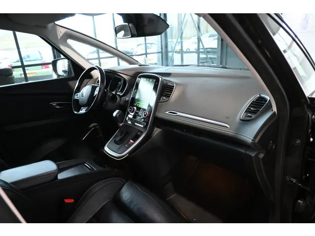 Mooi hè, deze Renault. Maar dat is alleen nog maar de buitenkant. Onder de motorkap zit een rijkdom aan innovatieve techniek om waar te maken wat het merk belooft: Drive for change. Een viercilinder benzinemotor en een automatische transmissie zorgen voor de uitstekende prestaties van deze auto. Topklasse: daar hoort leren bekleding absoluut bij. Een weldaad voor uw rug en die van uw bijrijder: deze Renault Grand Scénic heeft verwarmbare voorstoelen met massagefunctie. Zit u goed? De stoelen zijn eenvoudig instelbaar dankzij de elektrische bediening met geheugen. Het glazen panoramadak laat u genieten van een wijds uitzicht en meer lichtinval. Als u meer mensen mee moet nemen, is dat geen enkel bezwaar dankzij de derde zitrij. Tot de voorzieningen van deze auto behoren 20 inch lichtmetalen velgen, LED koplampen, donker getint glas achter, LED-achterlichten, verstelbare lendensteunen en verschuifbare achterbank.Met de achteruitrijcamera ziet u wat er achter de auto gebeurt. Zo rijdt u moeiteloos achteruit. Het infotainmentsysteem bedient u met uw vingers of met uw stem, met dank aan de geïntegreerde stembediening. De geluidskwaliteit aan boord is 'next level' dankzij het high performance audiosysteem. Het full map navigatiesysteem geeft duidelijke instructies. Zo komt u veilig en vlot aan waar u moet zijn. Altijd en overal verbonden: dat kan dankzij de ingebouwde WIFI-hotspot. Met WIFI-hotspot, automatische airconditioning, DAB ontvangst, regensensor, cruise control en keyless entry is deze Renault helemaal compleet.