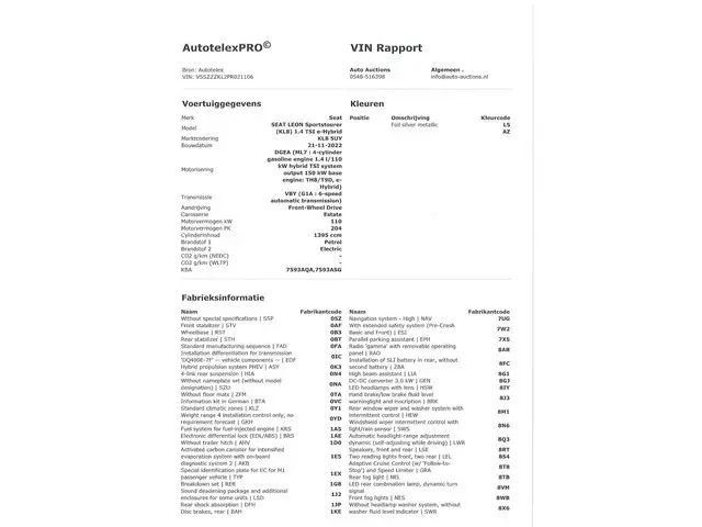 Voertuiggegevens van deze Seat Leon