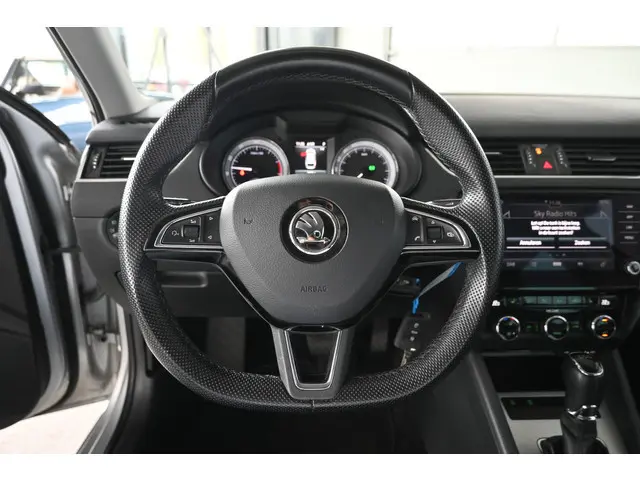 Zijn dynamische uiterlijk maakt al direct duidelijk wat voor rijervaring u van deze ŠKODA Octavia Combi mag verwachten: pure sportiviteit. De benzinemotor met automatische transmissie levert uitstekende rijprestaties. Bestuurder en bijrijder krijgen een warm welkom: deze ŠKODA Octavia Combi is voorzien van verwarmbare voorstoelen. U wordt in deze auto ook getrakteerd op halflederen bekleding, adaptieve mistlampen, LED-achterlichten, verstelbare lendensteunen en snelheidsafhankelijke stuurbekrachtiging.Voor wie hoge eisen stelt aan geluid en akoestiek, is deze auto voorzien van een high performance audiosysteem. Gedoe met kabels en stekkers in de sigarettenaansteker is voorbij. De aanwezige draadloze oplaadmogelijkheid voor telefoons zorgt voor wireless recharging van uw smartphone. De automatische airconditioning zorgt voor een prettige binnentemperatuur. Parkeersensoren helpen u tijdens het in- en uitparkeren. Het luxeniveau in deze ŠKODA is niet alleen gericht op comfort, maar ook op uw veiligheid. Tal van sensoren helpen u om de omgeving in de gaten te houden. De automatisch inschakelbare verlichting zorgt dat automatisch de verlichting wordt ingeschakeld als het donker wordt, wat bijvoorbeeld in tunnels erg handig is. En de regensensor zet de ruitenwissers aan zonder dat u eraan hoeft te denken. Ook is de ŠKODA uitgerust met: dashboard met spraakbediening, navigatiesysteem, cruise control, sportstuurwiel, automatisch dimmende buitenspiegels en centrale deurvergrendeling met afstandsbediening.