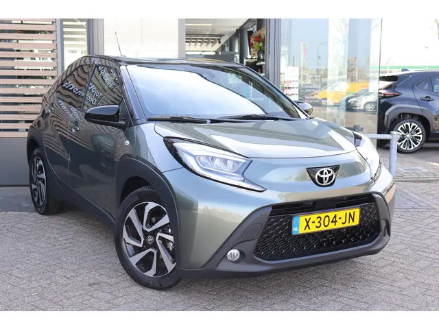 ..Jonge Aygo-X Pulse in de kleur "Cardamon Green" metallic met zwart dak en achterzijde. Deze Aygo-X is voorzien van 17" lichtmetalen velgen, getint glas, Climate Control, Adaptieve Cruise Control, regensensor, lichtsensor en meer! U bent welkom voor een proefrit met deze fraaie Aygo-X!Geniet nu, betaal zoals jij wilt met Toyota Betaalplan.