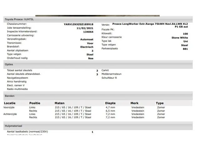 Voertuiggegevens van deze Toyota pro-ace