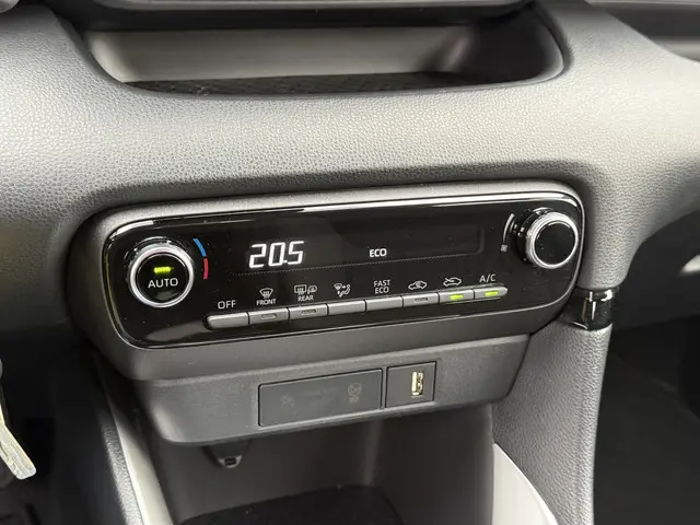 'Let's go places', zeggen ze bij Toyota. En wat dat betekent, laten ze ook bij dit model zien. Twijfelt u nog tussen rijden op benzine of elektrisch? Niet nodig. Deze hybride Toyota Yaris doet het allebei. In deze auto profiteert u onder andere ook van: 16 inch lichtmetalen velgen, LED koplampen, dakspoiler, in hoogte verstelbare passagiersstoel, in delen neerklapbare achterbank en LED-achterlichten.Het digitale dashboard is qua lay-out en zichtbaarheid superslim ingedeeld. Alle functies in één keer in beeld! Onder alle omstandigheden perfect zicht op wat zich achter de auto afspeelt: de achteruitrijcamera zorgt ervoor! Adaptive cruise control houdt de ingestelde snelheid vast en houdt afstand tot het voertuig voor u. Dankzij Connected Services heeft u overal en altijd uw dashboard op zak. Alle belangrijke functies zijn te checken via de app. Een luisterrijke auto, mede dankzij het audio-installatiesysteem met bluetooth en usb-aansluiting. Ook opladen van devices onderweg is dus mogelijk. Wat u ook in deze auto kunt vinden zijn automatische airconditioning, DAB ontvangst, regensensor, lederen stuur en lederen versnellingspook.