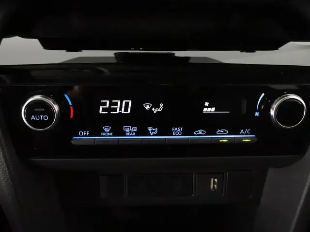 In één oogopslag zijn alle vitale functies afleesbaar dankzij het digitale dashboard. Kommaar-kommaar-kommaar, aldus de achteruitrijcamera. Iedere centimeter vrije ruimte komt haarscherp in beeld. Schadevrij inparkeren maar! Adaptive cruise control is een comfortabele en veilige optie. Het systeem reguleert de snelheid en houdt automatisch afstand tot uw voorligger. Wat is de onderhoudsstatus van deze auto? U checkt het snel, simpel en overal via uw smartphone. Automatische airconditioning verwarmt of koelt het interieur met een druk op de knop. De uitrusting van deze Toyota is met DAB ontvangst, regensensor, keyless entry, buitentemperatuurmeter, automatisch dimmende binnenspiegel en lederen stuur behoorlijk compleet.