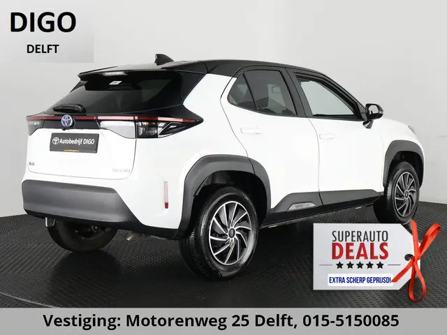 **** Deze Yaris Cross staat in de showroom Motorenweg 25 te Delft 015-5150085***Een hoogzitter van ongekende kwaliteit. Deze Yaris Cross is voorzien van allerlei gemakken. In deze mooie Bi-TONE LUXERY PACK( oa. zwart dak, extra getint glas, Keyless entry en start ,spiegels high gloss black, maar ook Apple/ Android carplay !) . Maar ook Climate control, een groot Multimediasysteem en DAB , Digitaal instrumentenpaneel en natuurlijk nog VEEL meer! Laat u zelf overtuigen van de vele voordelen die de Toyota Yaris Cross u te bieden heeft en breng een bezoek aan onze showroom gevestigd aan de Motorenweg 25 te Delft . Wenst u vooraf meer informatie? Neem dan gerust contact op met een van onze verkoopadviseurs op 015 - 515 00 85.Wilt u meer weten over deze Toyota kunt u altijd bellen naar: 015 515 00085.
