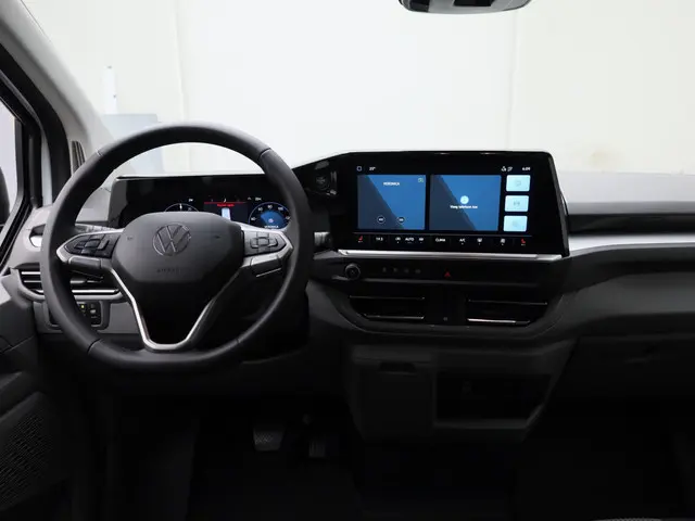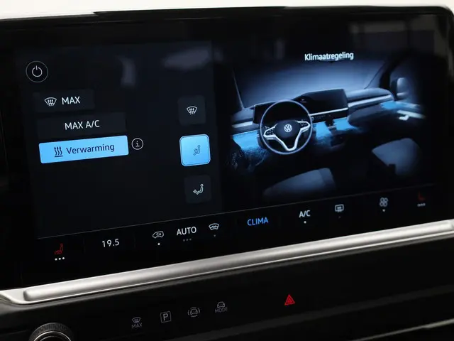 Hij biedt volop ruimte, deze Volkswagen Bedrijfswagens e-Transporter Kombi, en dankzij zijn elektrische aandrijving is er ook plenty vermogen voor een dynamische rijstijl. Het aantal kilometers dat u op een acculading kunt rijden, is ruimschoots genoeg voor de gangbare dagelijkse ritten, en het opladen kan in de meeste gevallen 's nachts gebeuren. We hebben het hier over een nieuwe auto, hij is nu direct leverbaar. Op koude en donkere dagen zijn de verwarmbare voorstoelen een uitkomst. Onverhoeds de deur opengooien is een risico voor passerend verkeer. De schuifdeur aan de zijkant is dus gemakkelijker én veiliger. Ook is de auto voorzien van: LED koplampen, warmtewerend glas, neerklapbare achterbank, LED-achterlichten, elektrisch verstelde en verwarmde buitenspiegels en verstelbare lendensteunen.Rijfuncties worden glashelder en overzichtelijk weergegeven via het digitale dashboard. Omdat u nou eenmaal geen ogen in uw achterhoofd heeft, is het altijd lastig om achteruit te rijden zonder brokken te maken. De achteruitrijcamera lost dat probleem op. Adaptive cruise control is een comfortabele en veilige optie. Het systeem reguleert de snelheid en houdt automatisch afstand tot uw voorligger. De auto's van vandaag rijden niet alleen subliem, maar luisteren ook goed. Via een speciale app kunt u overal diverse functies controleren en de status van de auto inzien. Ogen op de weg, handen aan het stuur. De audiobediening op het stuur zorgt dat u probleemloos schakelt tussen zenders. Deze Volkswagen Bedrijfswagens is voorzien van DAB ontvangst, airconditioning en centrale portiervergrendeling.