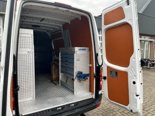 Volkswagen Crafter 35 2.0 TDI L2H2 Kast Inrichting Trekhaak 3500kg Airco Cruise controle Werkplaats Lang hoog Aluca inrichting 1e eigenaar Dealer onderhouden Euro 5