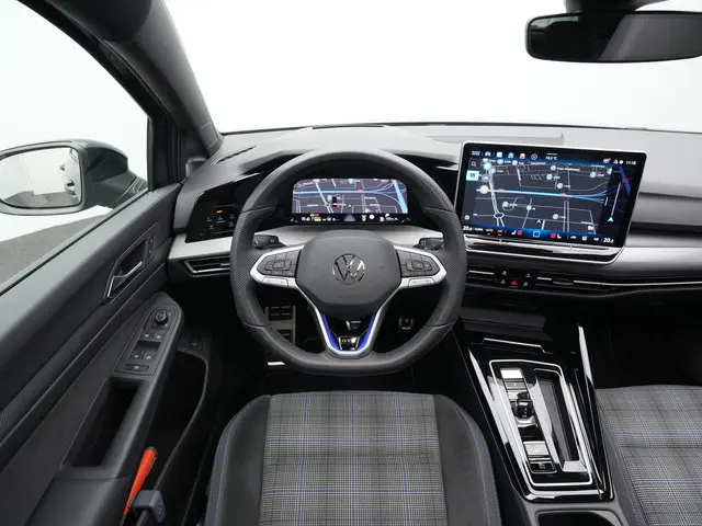 Volkswagen Golf GTE – Sportieve efficiëntie met high-end technologieDeze Volkswagen Golf GTE combineert sportiviteit met moderne plug-in hybride techniek en een opvallend strakke uitstraling. De R-Line exterieur styling geeft hem een dynamisch en scherp design, terwijl de lak in Dolphin Grey metallic zorgt voor een tijdloze en premium look. Het panoramadak brengt extra licht in het interieur en versterkt het ruimtelijke gevoel, terwijl de 18 inch ‘Catania’ velgen het sportieve karakter krachtig onderstrepen. Met het Black Style pakket en de verlichte grille/LED-strip oogt deze Golf modern en onderscheidend, zonder overdreven te zijn. Alles klopt hier – van uitstraling tot afwerking.