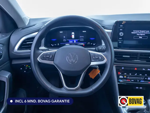 Appen met uw auto? Geen probleem. U kunt van overal contact opnemen, de functies controleren en activeren. U bedient 'm met remote services. Wat uw muzieksmaak ook is, met DAB-radio is er altijd wat te kiezen. Perfect weergegeven via het aanwezige audiosysteem. Kabels niet nodig, de draadloze telefoonlader laadt uw smartphone al rijdend bij. Automatische airconditioning regelt volautomatisch de temperatuur. U kiest de gewenste temperatuur en het systeem doet de rest. Een plekje vinden in de binnenstad is één, inparkeren is twee. Voor dat laatste heeft deze Volkswagen T-Roc prima parkeersensoren die u een handje helpen. De uitrusting van deze Volkswagen is met automatisch dimmende binnenspiegel en verstelbaar stuur behoorlijk compleet.