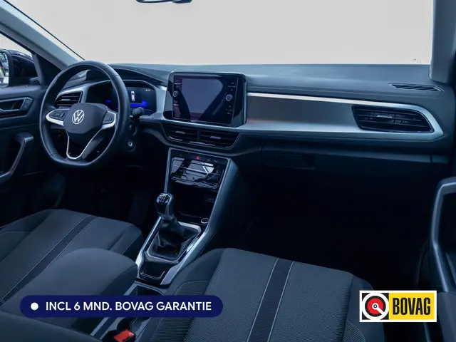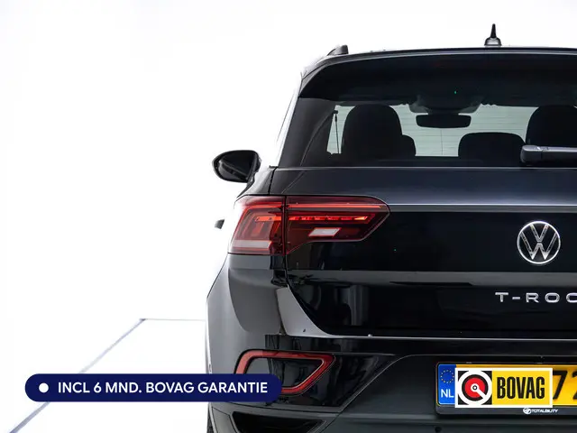 Het zijn de unieke kwaliteiten van een Volkswagen die zorgen dat hun berijders zo trouw zijn aan het merk. Dat blijkt ook weer bij deze T-Roc, met zijn doordachte ontwerp en zijn hoogstaande bouwkwaliteit. Het zijn de degelijkheid van de constructie en de doordachtheid van het ontwerp die ervoor zorgen dat een Volkswagen jarenlang begeerlijk blijft. Zoals deze T-Roc, bijvoorbeeld. De aandrijving van deze Volkswagen wordt verzorgd door een driecilinder benzinemotor en een handgeschakelde zesversnellingsbak. Nooit meer stramme spieren bij het uitstappen: daar zorgen de comfortstoelen voor! Bij de uitrusting van deze Volkswagen horen onder meer 17 inch lichtmetalen velgen, LED koplampen, trailer assistent, donker getint glas achter, in delen neerklapbare achterbank en LED-achterlichten.Natuurlijk brengt het digitale dashboard alle ritinformatie perfect in beeld. Maar ook communicatie, navigatie en tal van andere functies zijn permanent te volgen. 'Boem is ho'? Niet met deze achteruitrijcamera. U ziet achter net zo goed als voor en krijgt een duidelijk geluidssignaal! Als u de adaptive cruise control inschakelt, regelt de auto zelf de snelheid en de afstand tot de auto voor u. Pech of storing, altijd vervelend. Maar met Connected Services weet u direct wat eraan scheelt. En dus ook wat er moet gebeuren. Het eersteklas audiosysteem is voorzien van DAB-radio. Hoge kwaliteit en veel zenderkeus. Natuurlijk behoren draadloos opladen, regensensor, keyless entry, airconditioning, automatisch dimmende binnenspiegel en lederen stuur ook tot de uitrusting van deze complete auto.