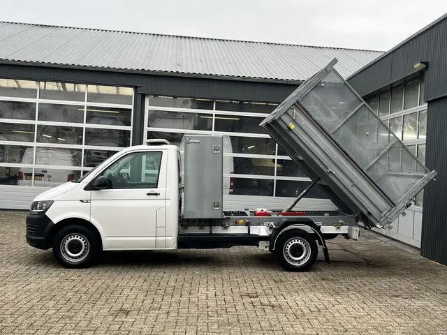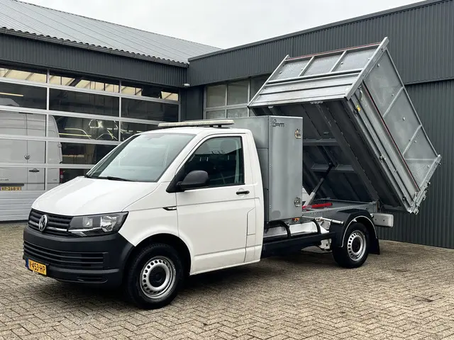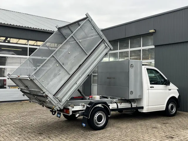 Volkswagen Transporter 2.0 TDI L2H1 150pk Pick-up Kipper open laadbak Airco Cruise controle Trekhaak 2500kg trekgewicht 1e eigenaar 3-Persoons Kieper Gereedschapskist P-up Doka Pritsche Ahk 2500kg Euro 6