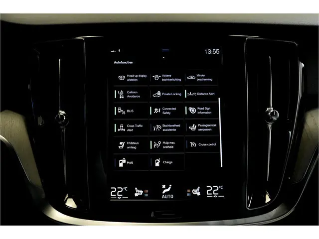Zoals u mag verwachten van deze Volvo S60 is hij uitgerust met een reeks aan actieve veiligheidssystemen. In het instrumentarium ziet u tijdens de rit ook de belangrijkste verkeersborden aangegeven, die de auto automatisch voor u leest. Onbedoeld buiten de rijstrook raken wordt voorkomen door het Lane-keeping systeem. Rijdt een ander voertuig in uw dode hoek dan waarschuwt het systeem met een signaal. Dankzij veiligheidsvoorzieningen als head-up display, City Safety System, forward collision warning system, hill hold functie, brake assist en vermoeidheidsherkenning, bent u steeds veilig onderweg.