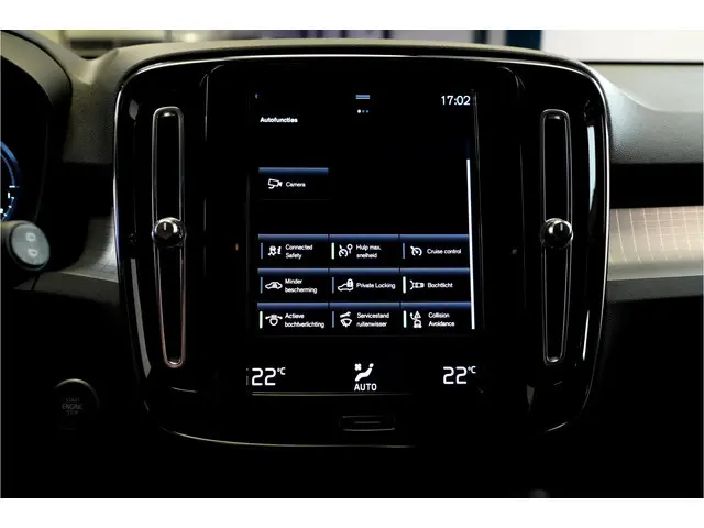 Deze Volvo biedt u niet alleen comfort en rijplezier, maar ook veiligheid. Actieve veiligheidssystemen houden voor u de weg in de gaten en reageren op onvoorziene situaties voordat u dat kunt. In het instrumentarium laat de verkeersborddetectie de actuele verkeersborden zien. Het Lane-keeping systeem doet precies wat nodig is: waarschuwen en corrigeren bij onbedoelde overschrijding van de rijstrooklijnen. Deze Volvo XC40 blijft altijd alert. Zo wordt gebruik gemaakt van forward collision warning. Bij het mogelijke risico op een aanrijding met een voertuig voor u, slaat het systeem alarm. De veiligheid van deze auto wordt verder verhoogd door City Safety System, hill hold functie, brake assist, vermoeidheidsherkenning en bandenspanningcontrolesysteem.