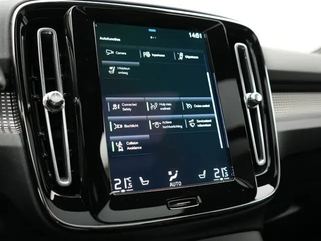 Zoals u mag verwachten van deze Volvo XC40 is hij uitgerust met een reeks aan actieve veiligheidssystemen. Dat de auto steeds meer taken van de bestuurder overneemt, merkt u bijvoorbeeld aan het systeem voor verkeersbord-detectie in deze auto. Het Lane-keeping systeem zorgt voor een automatisch constante positie binnen de rijstrook. Afdwalen is uitgesloten. De forward collision warning reduceert het gevaar van een botsing met een voorligger significant. In deze Volvo vinden we verder een hill hold functie, brake assist, vermoeidheidsherkenning en bandenspanningcontrolesysteem.