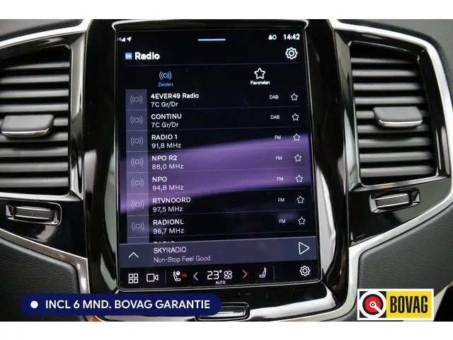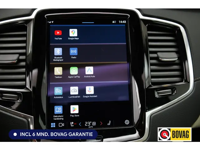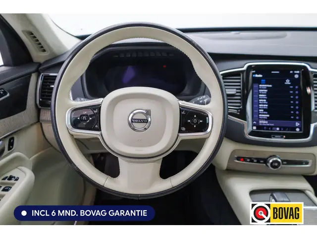 Met zijn kenmerkende hoge silhouet straalt deze SUV vastberadenheid uit, maar ook de zekerheid dat hij altijd zijn weg vindt, waar u ook naartoe rijdt. Deze Volvo XC90 uit 2023 heeft een tellerstand van 71991 kilometer. Als u een laag brandstofverbruik en goede prestaties belangrijk vindt, dan bent u uitstekend bediend met de viercilinder benzinemotor. Binnenin zien we een fraai afgewerkt lederen interieur. U past de stoelen moeiteloos aan, ze zijn elektrisch in te stellen en hebben bovendien een geheugen. Met een druk op de knop gaat de elektrische achterklep open. Waarom zou je alleen voorin behaaglijk mogen zitten? Daarom is er óók een verwarmde achterbank. De grote laadruimte van deze Volvo XC90 heeft nog een mooie verrassing in petto. Daar creëert u heel gemakkelijk nog twee extra zitplaatsen erbij en ontstaat een derde zitrij. In deze auto profiteert u onder andere ook van: Full LED koplampen en in delen neerklapbare achterbank.Het digitale dashboard is een perfecte bijrijder. Alles benodigde informatie is permanent zichtbaar of opvraagbaar. De functie van de 360 graden camera in deze auto is om u een totaaloverzicht van de omgeving te geven, ongeacht hoe smal de straat of parkeerplek is. Adaptive cruise control is een comfortabele en veilige optie. Het systeem reguleert de snelheid en houdt automatisch afstand tot uw voorligger. Het infotainmentsysteem bedient u met uw vingers of met uw stem, met dank aan de geïntegreerde stembediening. Deze auto gaat met u in gesprek. Hij vertelt u dankzij remote services alles over de status van diverse onderdelen en laat zich desgevraagd ook activeren. Gewoon via uw smartphone. En deze auto heeft ook Harman Kardon-audiosysteem, full map navigatiesysteem, WIFI-hotspot, achteropkomend verkeer waarschuwing, kruisend verkeer detectie en electronic climate control als standaard uitrusting.