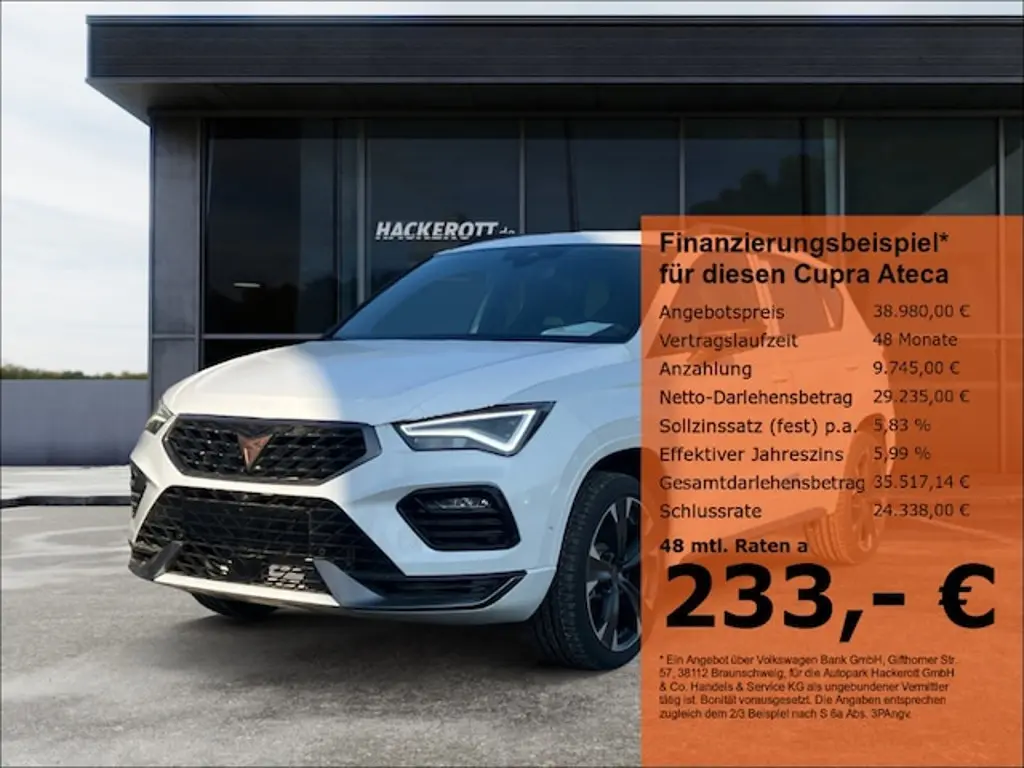 Cupra Ateca LED Navi Keyless Parklenkass. Rückfahrkam. AHK-klappbar El. Heckklappe PDCv+h