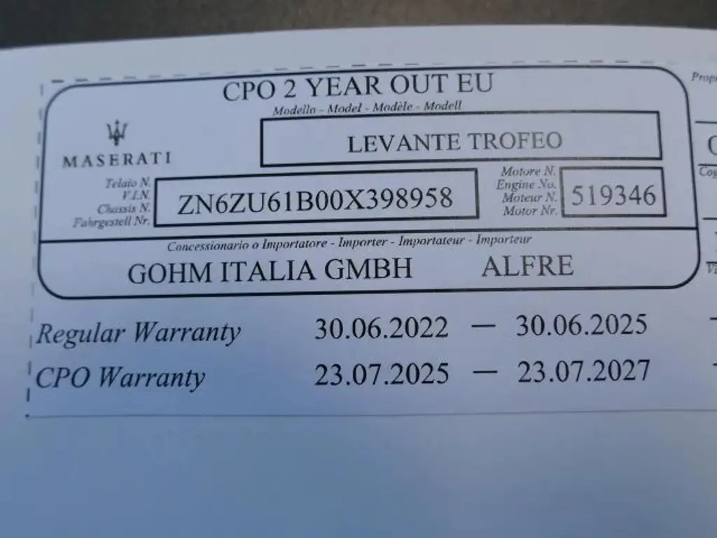Voertuiggegevens van deze Maserati Levante